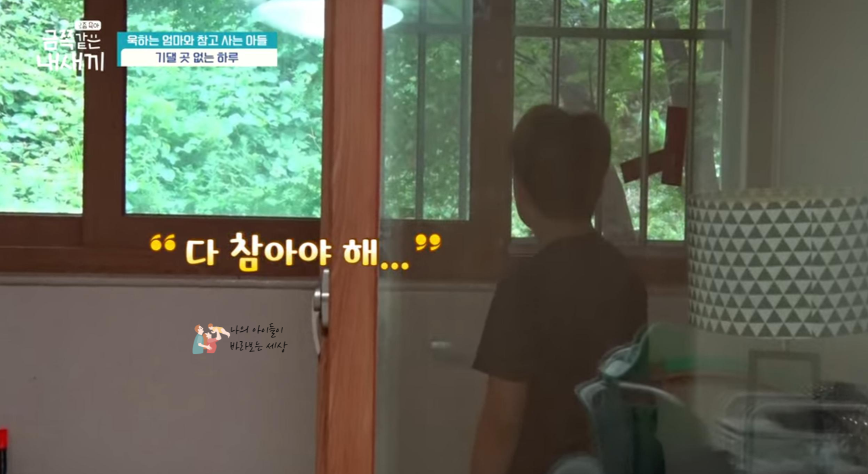 사실 친아빠였어도 그 소리는 짜증낼 법한도 한데 속을 삭히는 것이 새아빠 앞에서 민망함을 느끼며 속을 삭히는 모습을 크게 느껴졌다.