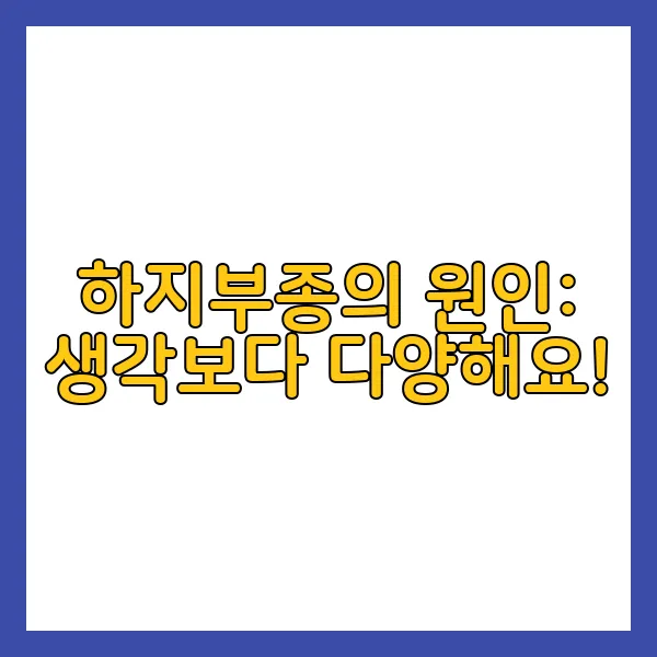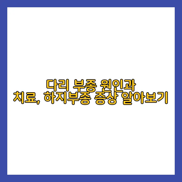 하지부종, 더 이상 가볍게 넘기지 마세요! 핵심 키워드: 하지부종, 다리 부종, 부종 원인, 부종 치료, 다리 붓기. 서브 키워드: 심부전, 신장 질환, 간 질환, 림프부종, 갑상선 기능 저하증, 약물 부작용.